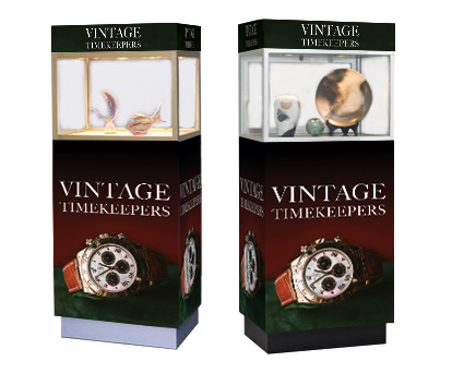 Includes one museum pedestal style showcase wrapped in company branding on the show floor.