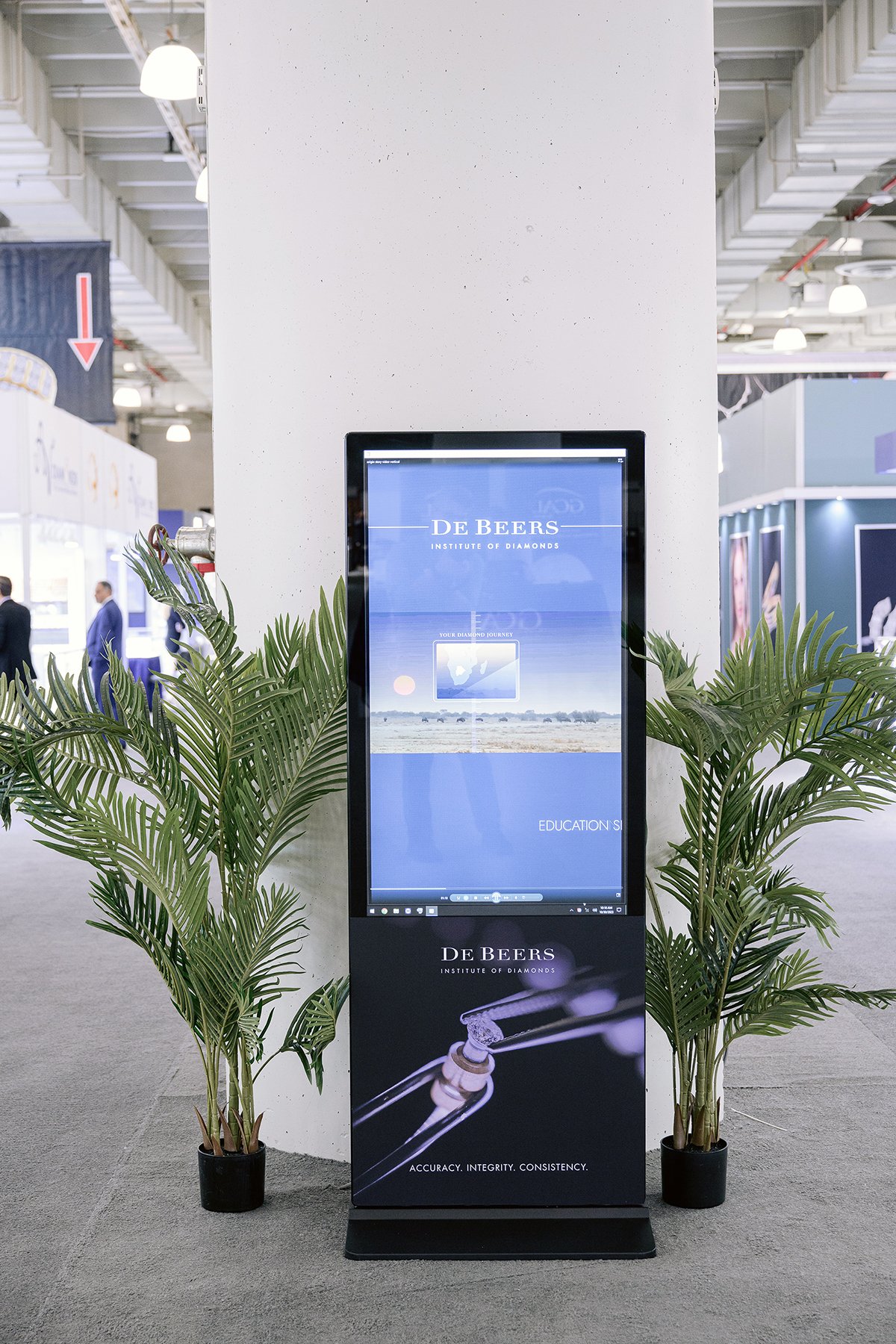 Attract buyers to your booth with a strategically placed branded interactive video meterboard!